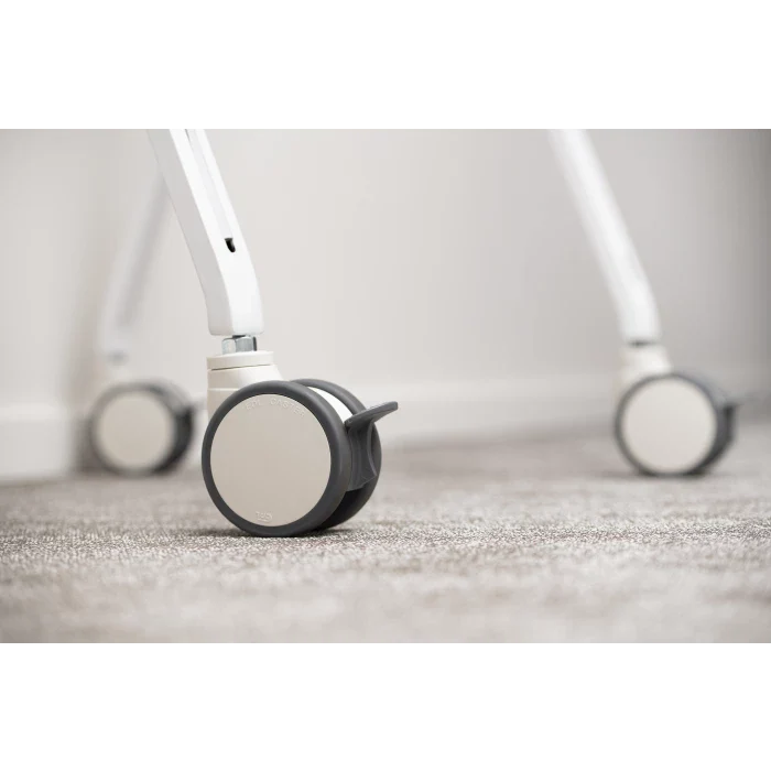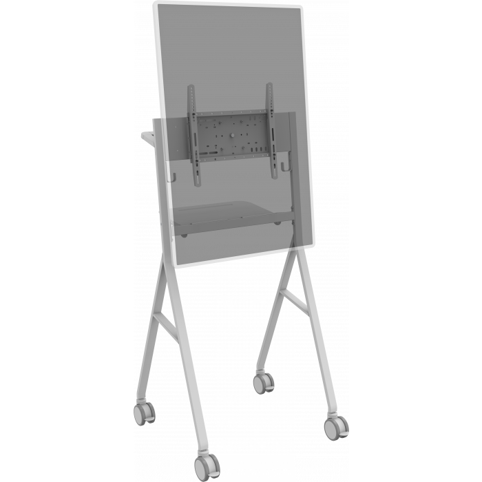 Vision’s VFM-F10 floorstand has an aesthetic which leans into the user and has a sense of stability. Big wheels make it easy to move, and the geometry is designed to minimize trip hazards so the user can interact with the display as naturally as possible, while still meeting tough UL1678 tip standards for screens below 55”.